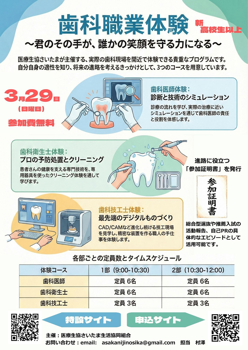 3月29日 歯科職業体験のお知らせ(生協歯科)